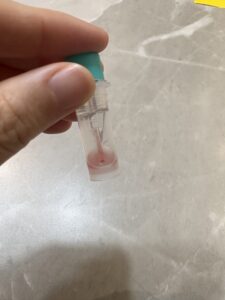 잘 섞인 혈액을 키트에 3방울 넣어주면 반응이 보입니다.